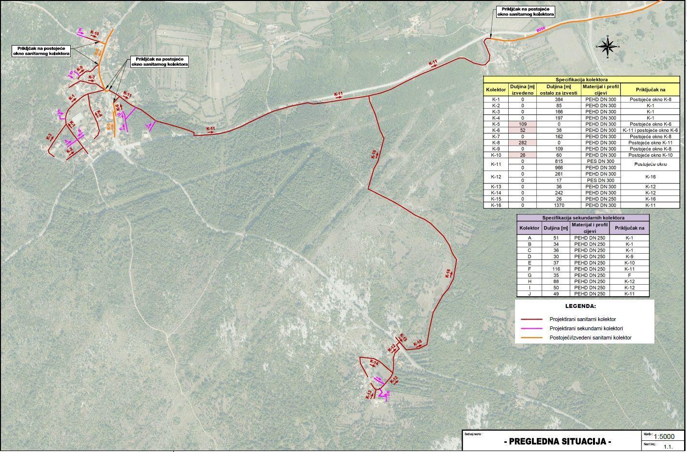 U sklopu Projekta, postaviti će se 5.460 metara gravitacijskog cjevovoda prema situaciji / skici u prilogu sa spojem za preko 100 domaćinstava.