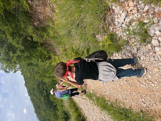 Penjanje uskom stazom na Plominsku goru pratilo je izobilje zelenog raslinja – cvatuća brnistra, zečja glava, ruta, jasenak, šparoge, vrijesak, i nepregledna polja kadulje. Rojevi pčela i leptirića upotpunili su bogatstvo ove mirisne prirode.