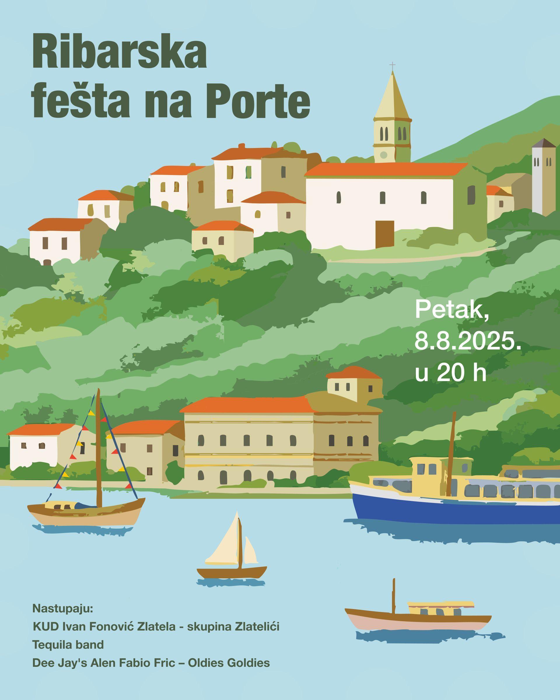 Ribarska fešta na Porte održava se u petak, 8. kolovoza, s početkom u 20 sati na rivi u Plomin Luci. Organizira je Turistička zajednica Općine Kršan, a ulaz je besplatan.
