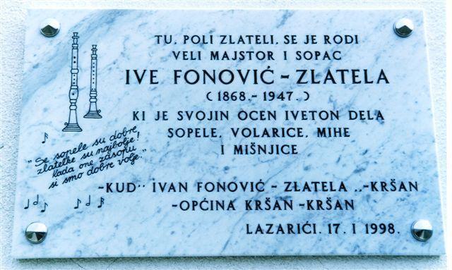 Takvo je stanje u Kršanu dočekalo osnivanje KUD-a Zlatela 19. siječnja 1997. godine. U anketi provedenoj kraj04 - Ivan Fonovic Zlatela - 1868 - 1947 - vgaem 1996. godine u Osnovnim školama u Čepiću, Potpićnu i Vozilićima, zabilježena je iznenađujuće velika zainteresiranost učenika za narodnu umjetnost. To je bio dovoljan signal da Poglavarstvo i Općinsko vijeće predlože osnivanje kulturno-umjetničkoga društva. Tako je trinaest osnivača, na čelu s petoricom članova inicijativnoga odbora, 19. siječnja 1997. godine povodom pedesete godišnjice smrti Ivana Fonovića Zlatele, poznatog izrađivača istarskih autohtonih narodnih glazbala, osnovalo kulturno umjetničko društvo njegova imena.